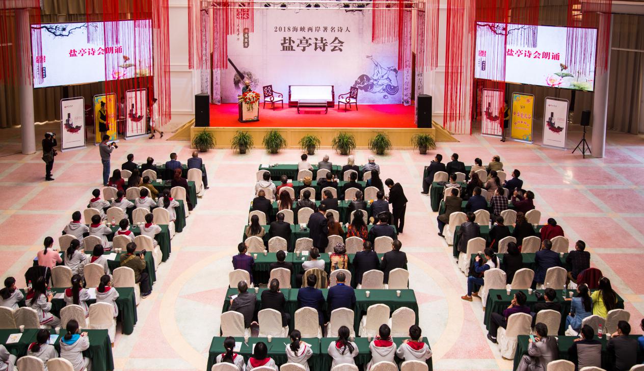 詩會上,兩岸著名詩人以及鹽亭本土詩人紛紛登臺,飽含深情地誦讀自己的愛作,或渾厚、或柔美,抑揚頓挫,富有張力,讓現場觀眾陶醉在詩情之中。