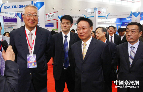 中國臺灣網10月30日馬鞍山訊 10月26日至29日,由安徽省臺辦、省經信委、馬鞍山市政府共同主辦的2018第七屆海峽兩岸(馬鞍山)電子信息博覽會在馬鞍山市舉行,海峽兩岸關係協會副會長李亞飛、安徽省政協副主席牛立文、安徽省臺辦主任劉泉、馬鞍山市委書記張岳峰、馬鞍山市人民政府市長左俊以及臺灣電電公會理事長郭臺強、臺灣工業總會副理事長林明儒等出席開幕式並巡館。