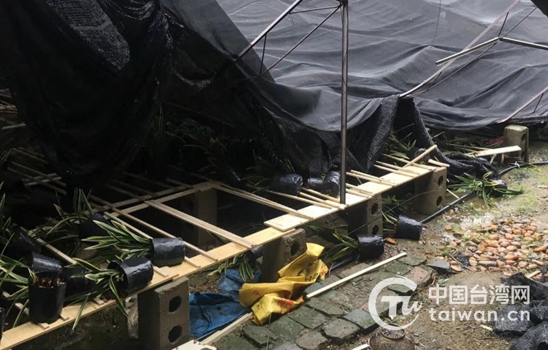 2018年9月17日,22號臺風“山竹”襲來,賀彩蘭園約7到8畝架棚和數千盆蘭花被臺風吹倒。(圖片來源:廣西玉林市臺辦)