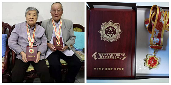 榮獲慶祝中華人共和國成立70周年紀念章。(中國臺灣網發)
