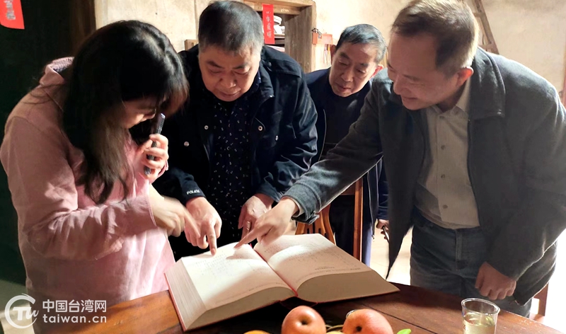 謝女士夫妻和堂兄在查閱族譜(圖片來源:贛州市臺辦)