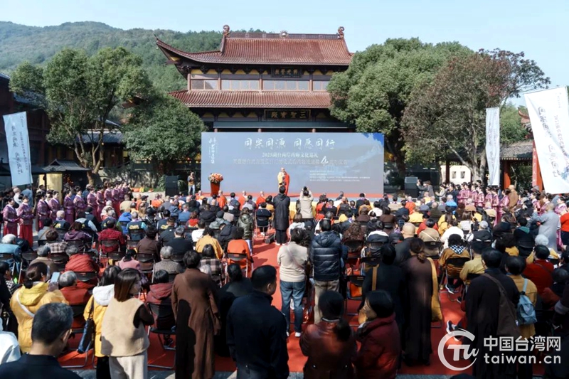 中國臺灣網11月16日訊 14日,“同宗同源 同願同行”2023湖臺藥師佛文化巡禮暨敬贈臺灣南投縣日月潭文武廟藥師琉璃佛四周年慶典活動在湖州長興碧岩禪寺舉辦,百余位來自海峽兩岸的高僧大德、信眾居士等相聚在太湖之濱、弁山腳下的藥師佛祖庭,共同祈願兩岸和平、同胞安康。