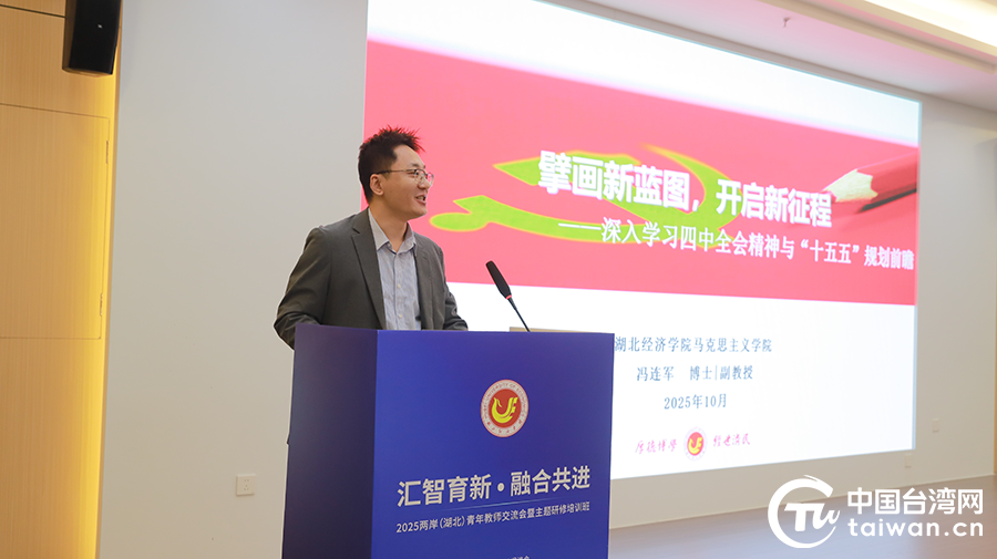 開幕式結束後,湖北省委講師團“百馬行動”宣講隊成員、該校馬克思主義學院副院長馮連軍以《擘畫新藍圖,開啟新徵程——深入學習二十屆四中全會精神與“十五五”規劃前瞻》為題,結合中共二十屆四中全會精神,對鄂臺高校教師發展協同與創新進行詳細解讀。