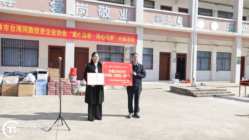 玉林市臺協向上地小學捐贈教學物資等。(中國臺灣網發)