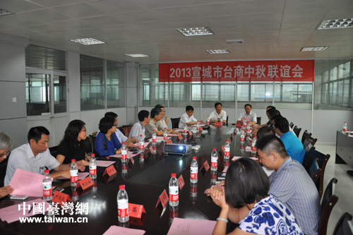 中國臺灣網9月16日宣城消息 9月12日,安徽宣城市舉行“2013宣城市臺商中秋聯誼會”,臺商歡聚一堂,共敘兩岸親情,共謀發展大計,喜迎中秋佳節。宣城市政協副主席、市委統戰部部長孔和平出席並講話,市委統戰部常務副部長楊邦孝、市臺辦主任陳自水等參加。