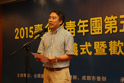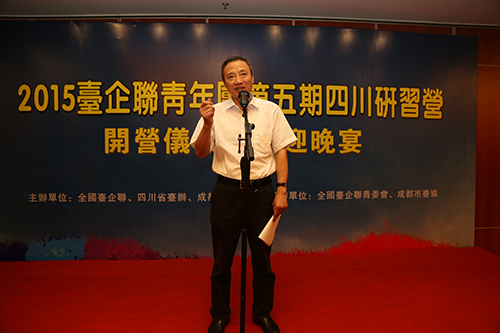 成都市臺辦主任戴浚在2015全國臺企聯青年團四川研習營開營儀式上致歡迎辭。