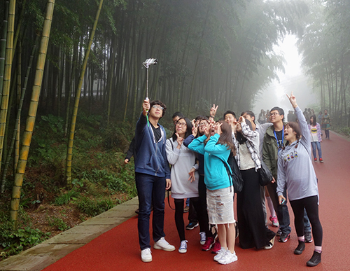 細雨朦朧中的竹海,風濕漉漉地吹著,空氣中飄蕩著竹葉的清香。置身林間,大學生們不約而同地做了同樣的動作——深呼吸。“以前在電視上看到過,感覺好美好美,一直都想著要來,這次終于有機會跟著臺聯來到這里。雖然天公不作美,但雨中的竹海有著別樣的韻味,如水墨山水,如人間仙境。”四川大學的陳同學一邊呼吸著清新甘甜的空氣,一邊感慨地說。和她一樣,其他同學幾乎都是第一來到這個曾被評為“中國最美十大森林”之一的蜀南竹海。看青翠欲滴的茂竹秀林,聽叮叮咚咚的山泉流淌,觀群山碧海的遼闊竹海,大家直呼滌蕩身心,不虛此行。