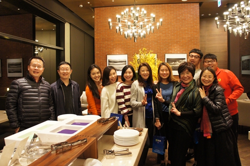 四川省臺辦副巡視員楊志學(左二)與臺灣前民意代表陳碧涵(右二)、臺灣旺報社總編王綽中(左一)等看望參加2015年川臺大學生文化體驗營的臺灣學生。