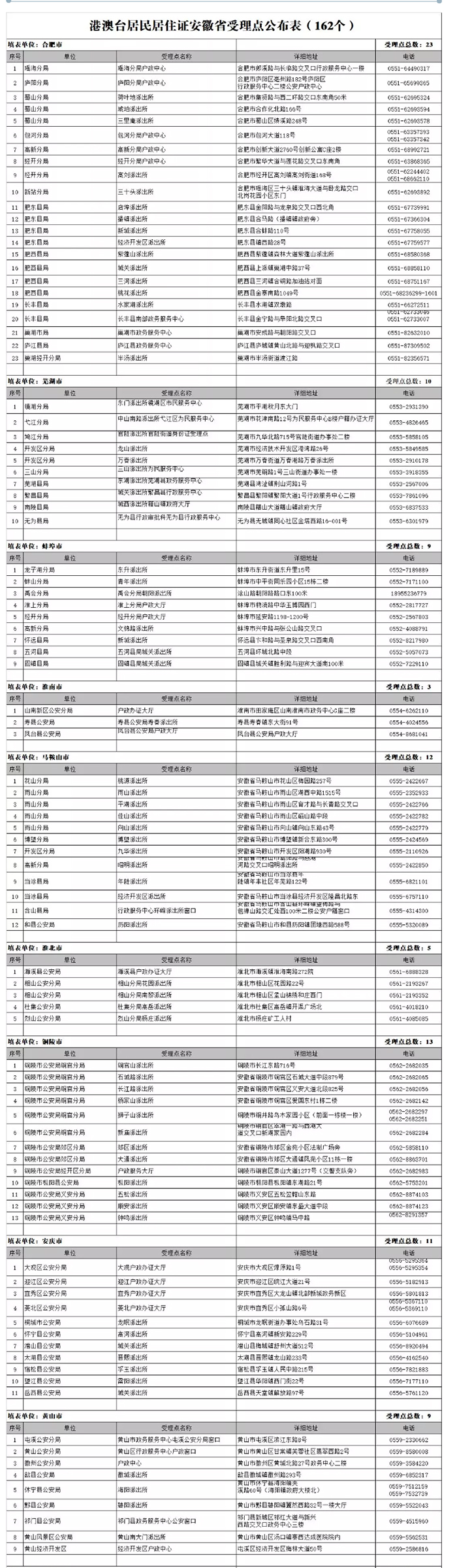 9月1日起 ,符合申領條件的港澳臺居民可在安徽省162個點辦港澳臺居民居住證了。