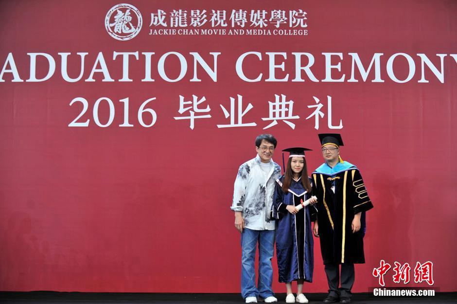 6月5日,影視明星成龍來武漢參加成龍影視傳媒學院2016年畢業典禮,與學生交流分享自己的人生經驗。他勸勉大學生們:“要好好學習各種技能,不要懷疑自己。希望你們任何時候都要努力學習,畢業之後也要做一個復合型人才,有目標就不要放棄。”鐘欣 攝