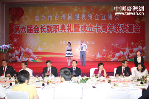 中國臺灣網9月11日嘉興消息 9月6日晚上,浙江嘉興市臺灣同胞投資企業協會舉行第六屆會長就職典禮暨成立十周年聯歡酒會。