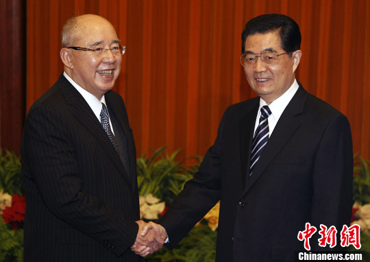 胡錦濤強調,要繼續穩步推進兩岸經濟文化等領域的交流合作。雙方應該積極促進兩岸經濟合作框架協議各項後續商談取得新成果,推動兩岸產業合作取得實質進展,積極擴大金融領域互利合作。同時,雙方還應該積極考慮在文化教育領域商簽相關協議,以推動兩岸文教交流機制化和向更高水平邁進。希望通過雙方共同努力,使兩岸同胞在經濟合作中增加共同利益,在文化交流中增強精神紐帶,在直接往來中增進彼此感情,真正像一家人一樣,攜手推動兩岸關係和平發展。