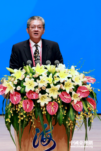 17日,第四屆海峽論壇大會在廈門舉行。圖為臺灣商工統一促進會主席吳義德在大會上發言。(中國臺灣網 王偉 攝)