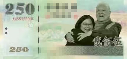 網友設計的“新”250元鈔印上臺灣地區領導人蔡英文和前臺灣地區領導人李登輝,這象徵……。(網絡圖)