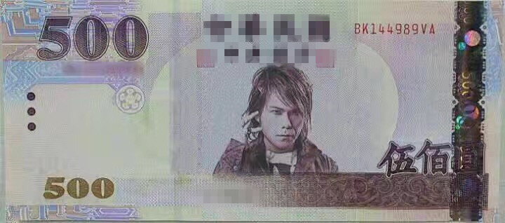 網友惡搞,將歌手伍佰(吳俊霖)的肖像放上500元鈔票,表示“伍佰元就該放伍佰”。(圖片來源:臺灣《聯合報》)