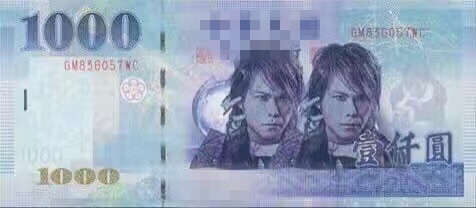 網友惡搞,將歌手伍佰(吳俊霖)的肖像重疊放置,兩個伍佰正好等于一千元。(網絡圖)