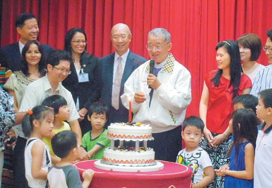 臺灣“監察院”今天上午舉行慶生會暨親子日活動,安排10組臺“監察院”同仁參與孝親洗腳。上周才過生日的院長王建嬧與院內同仁親屬一同唱生日快樂歌。