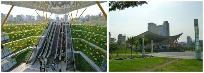 高雄地鐵中央公園站的設計理念則出自英國設計師理查·羅傑斯的巧思,其白色飛揚的雨庇搭配宛如向日葵田的綠化植栽,讓整個車站充滿活力,廣受好評,居全球最美地鐵站排行第4名。