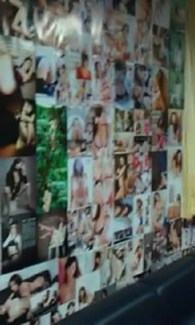 牆壁上貼滿艷女圖片。圖片來源:臺灣媒體