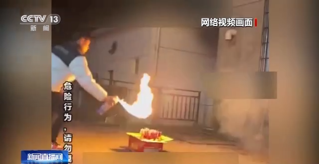 更有甚者,在江西九江的這名男子,為尋求同時點燃多個煙花爆竹的刺激,竟然用打火機將易燃易爆的殺蟲劑進行噴射點燃。雖然拍攝者沒有受傷,但這樣的操作在專業人員看來,卻是極易引發安全事故的危險行為。