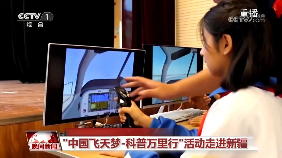 在新疆,“中國飛天夢-科普萬里行”科技志願團的志願者們走進校園,為當地中小學校的孩子們開展航空航天知識科普講座,並帶來飛行模擬設備,讓更多的學生體驗飛行的樂趣、科技的力量。