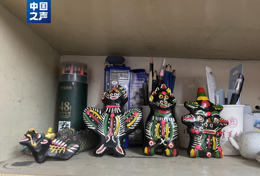 他想起小時候每年農歷二月二至三月三,母親趕廟會回來時帶的泥泥狗,母親說能給他消災除病。這種河南周口淮陽太昊陵廟會特產的泥塑,以當地特有的泥土捏成各類動物形狀,黑色鋪底,明艷的綠、黃、紅、白四色彩繪點線和各種符號鋪滿全身。