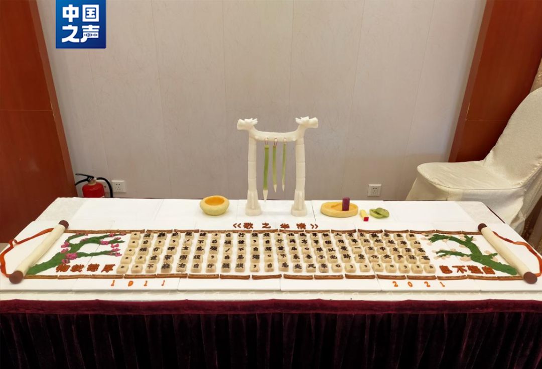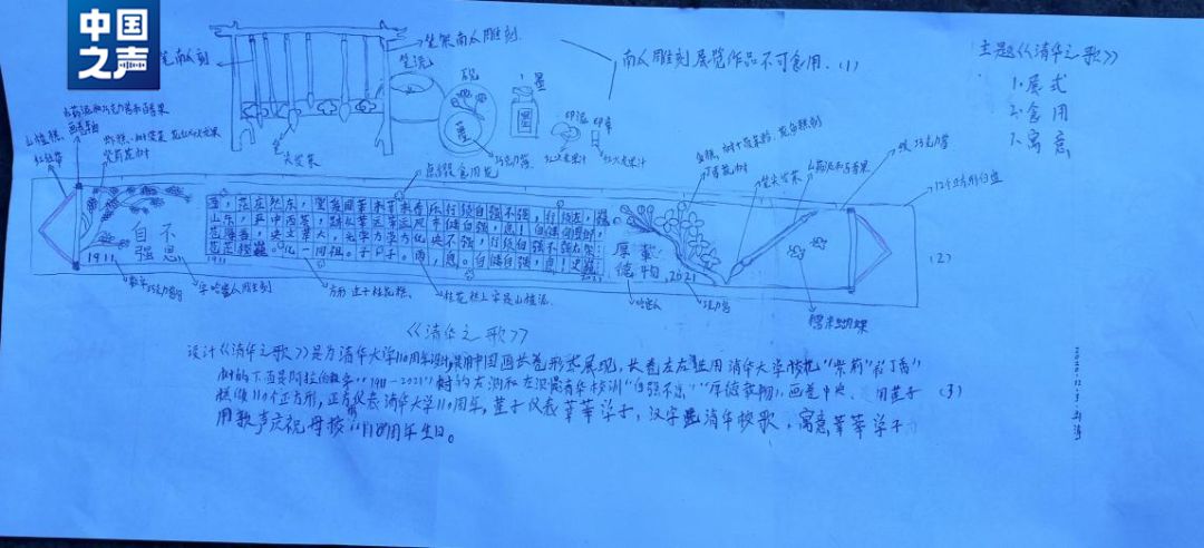 劉濤做涼菜,和畫畫一樣不惜力。他端出來的菜里,有清華的建築、景觀、文化,遇到主題宴會,他更是絞盡腦汁:“一桌菜有時候我晚上構思到一兩點,先畫草圖,畫完草圖以後才能把它呈現出來。用什麼菜,叫什麼名字,畫清華哪個景點,菜用什麼原料,怎麼呈現它的形。”