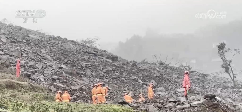 在受災核心區,救援人員和大型機械正在緊張搜救。塌方長度達1公里多,滑坡體上方還不斷有碎石下墜。救援人員告訴記者,在全力搜救失聯人員的同時,防止發生次生災害、加強隱患排查的工作也在同步進行。