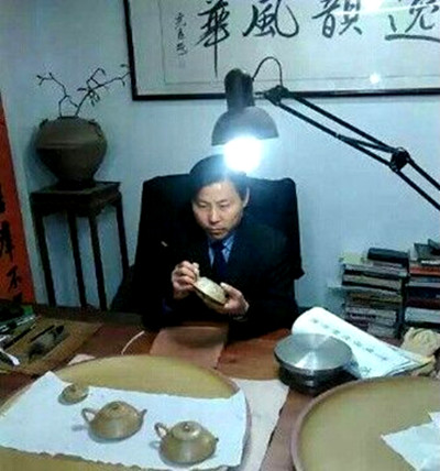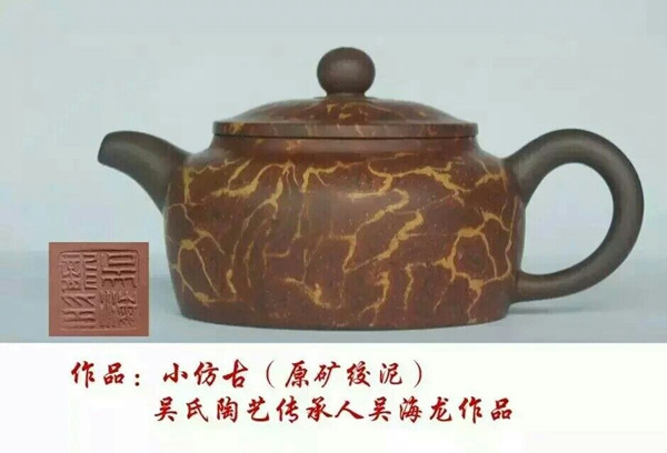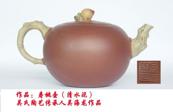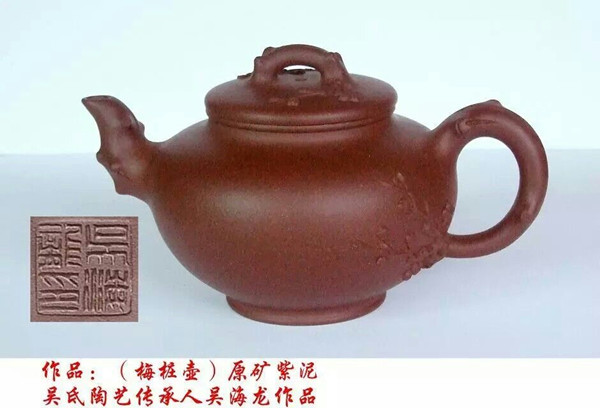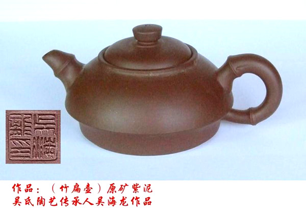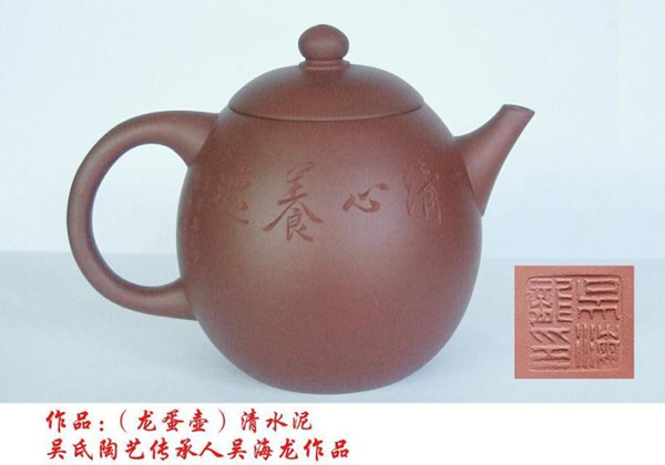出生于宜興紫陶世家——中國吳氏陶藝金鼎商標傳承人的吳海龍先生,自幼在宜興紫陶文化工藝的熏陶下,耳濡目染,從小就對紫砂工藝產生極其濃厚的興趣和愛好。隨後,跟從父親吳余清學做紫砂,在宜興市新莊鎮創辦了吳氏陶藝工作室(專為名人名家雕刻制作紫砂壺)。在父親的嚴格要求下,吳海龍先生從對紫砂的了解、熱愛、熟悉,再到對紫砂泥料的屬性與分類,紫砂壺的鑒賞和保養等有了獨特的理解。漫長的學藝過程,奠定了吳海龍今天的設計風格,傳承了吳氏的紫砂陶藝。
