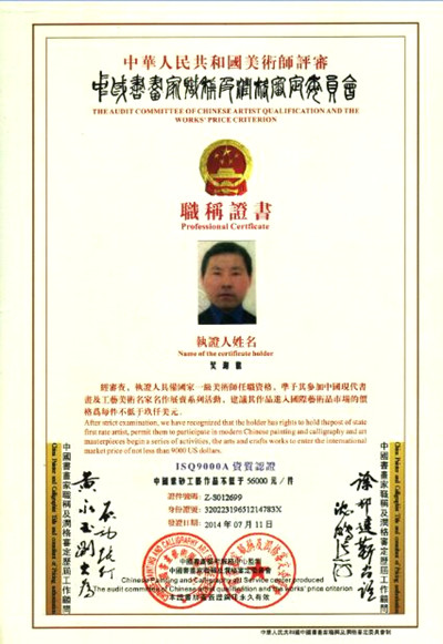 2014年7月11日,經中華人民共和國美術師評審委員會審查通過,吳海龍大師作品具備國家一級美術師任職之資格;
