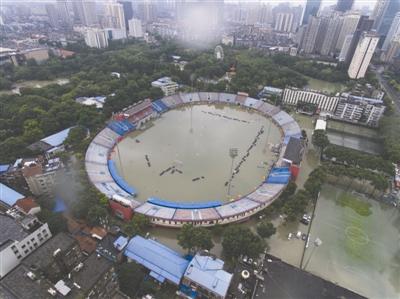 昨日航拍的積水嚴重的武漢市新華路體育場