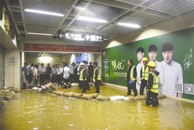 昨日,武漢市一地鐵站因雨水倒灌暫時停止營運