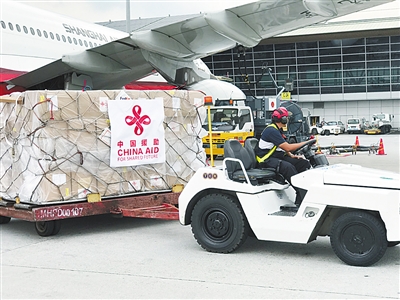 中國政府援助馬來西亞抗疫物資抵達馬來西亞吉隆坡國際機場。新華社發