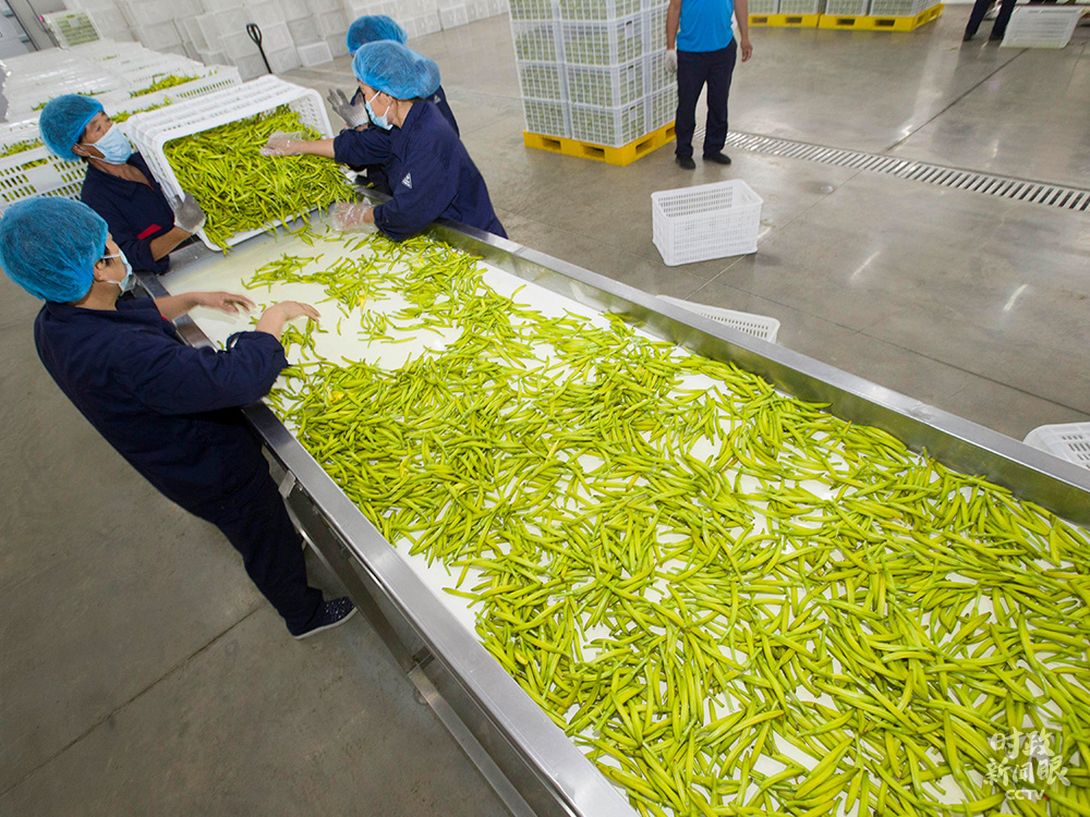 △7月中旬,山西大同黃花進入採摘季。經過清洗、篩選,最終由工人裝車推入烘幹房。