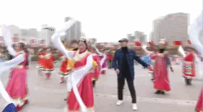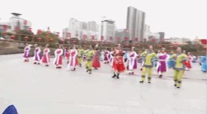 還有身著民族服裝的居民在跳著歡騰的廣場舞