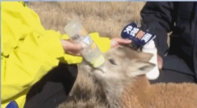 △可可西里 索南達傑保護站的工作人員和記者一起給藏羚羊喂奶