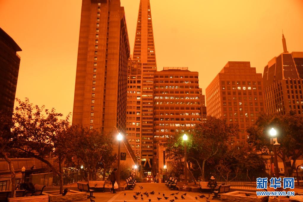 2020年9月9日,美國加州北部山火形成的煙塵遮天蔽日,舊金山中午時分如夜晚般昏暗。