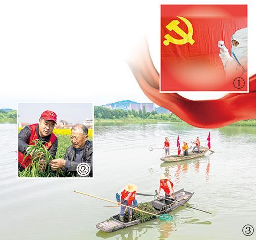 圖K:疫情防控期間,河北宣化一名青年護士火線入黨。 陳曉東攝圖L:江蘇淮安黨員志願者深入田間地頭,幫助村民察看小麥生長情況。 翟慧勇攝圖M:浙江長興黨員幹部帶頭巡河治湖,努力打造美麗太湖。 吳 拯攝