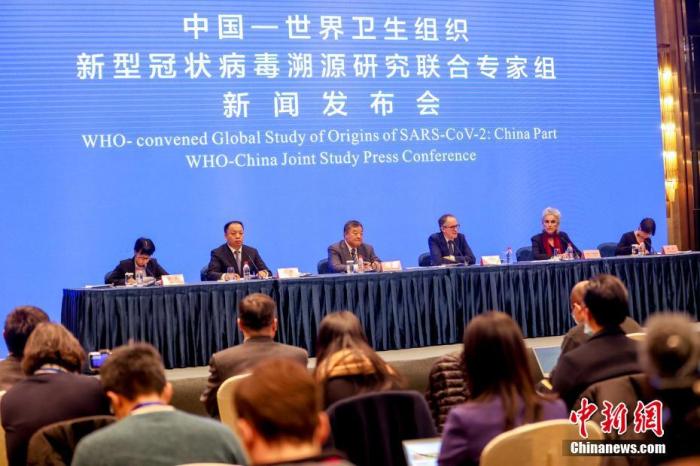 2月9日,中國-世衛組織新冠溯源研究聯合專家組在武漢舉行新聞發布會,通報共同開展新冠病毒全球溯源中國部分的工作情況。圖為新聞發布會現場。 中新社記者 張暢 攝