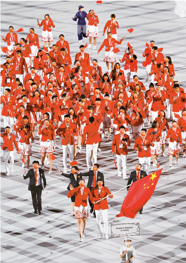 2021年7月23日,第32屆夏季奧林匹克運動會開幕式在日本東京舉行。圖為中國體育代表團在開幕式上入場。 新華社記者 許暢/攝