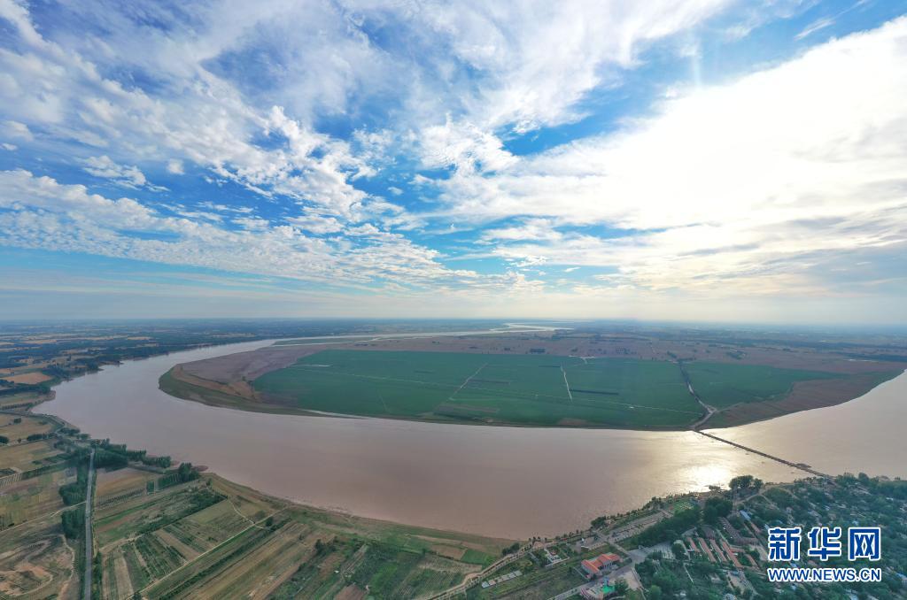 這是6月18日在河南省蘭考縣黃河灣風景區拍攝的黃河(無人機照片)。新華社發(李金雷 攝)