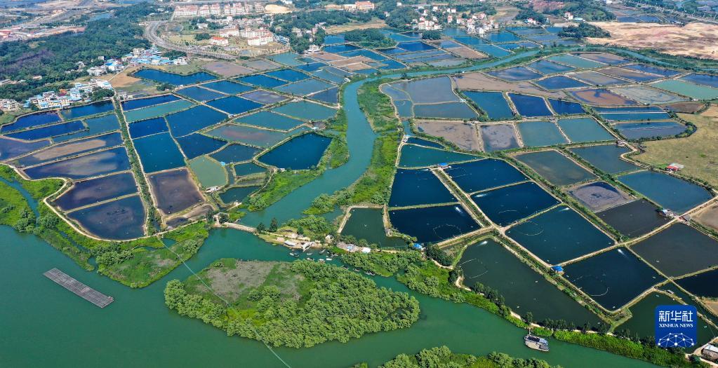 這是廣西欽州市欽南區沙埠鎮船埠環村的冬日蝦塘景色(11月25日攝,無人機照片)。新華社記者 張愛林 攝