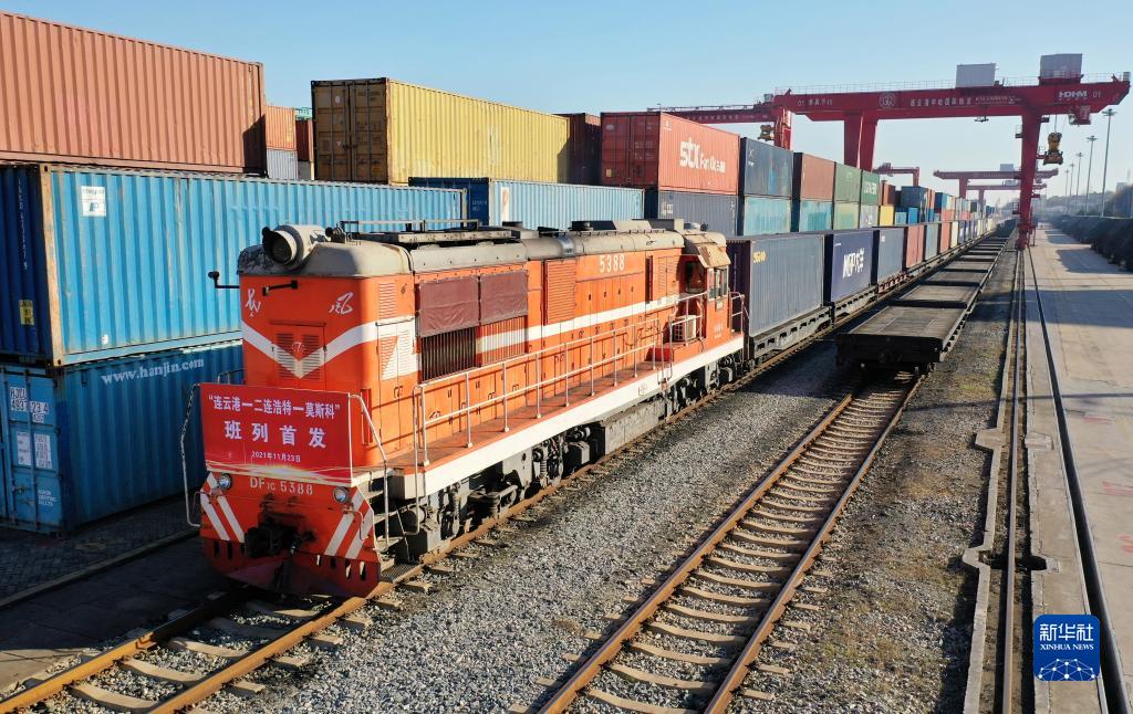 今年11月23日,江蘇連雲港。一列裝載著生活用品、家用電器等貨物的中歐班列由此首發、飛馳而去,將于20天後抵達莫斯科沃爾西諾站。