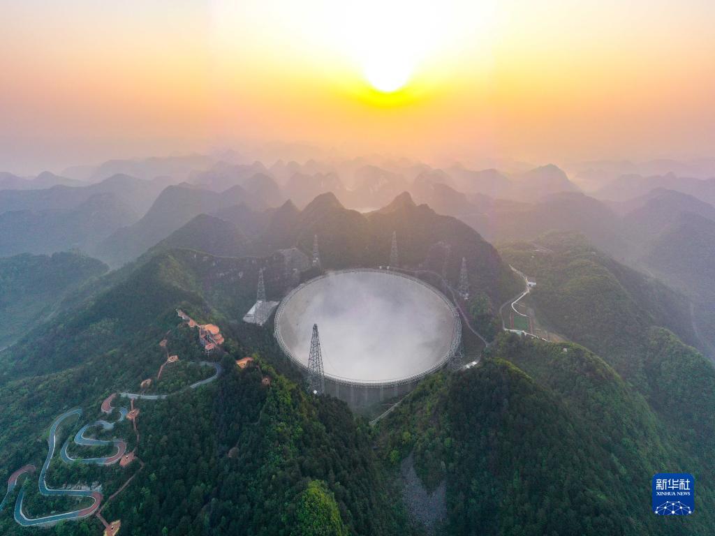 3月31日清晨拍攝的“中國天眼”全景(維護保養期間拍攝,無人機照片)。新華社記者 歐東衢 攝