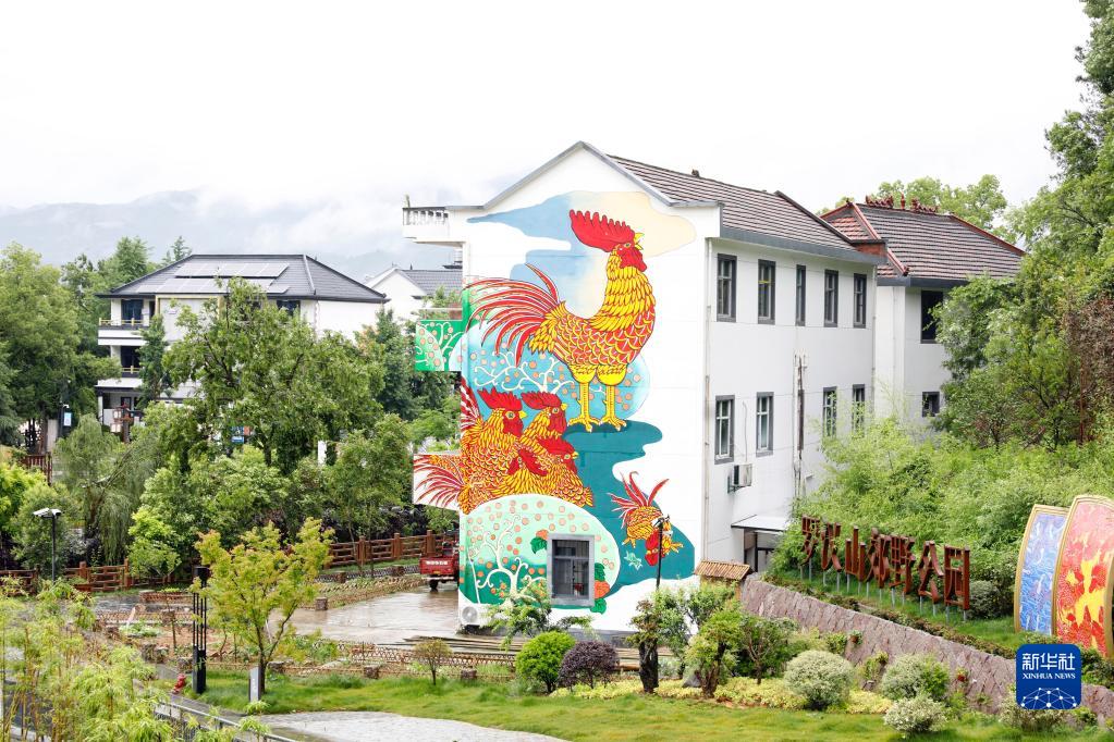 這是浙江衢州市柯城區溝溪鄉余東村建築牆壁上的農民畫“大公雞”(5月11日攝)。新華社發