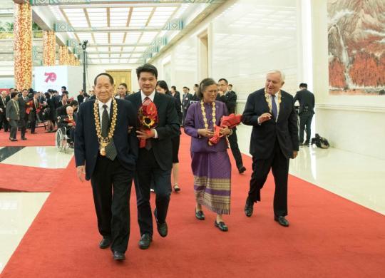 2019年9月29日,國家勳章和國家榮譽稱號獲得者在儀式後步出人民大會堂金色大廳。經中共中央批準,中華人民共和國國家勳章和國家榮譽稱號頒授儀式于9月29日上午10時在北京人民大會堂隆重舉行。新華社記者王曄攝