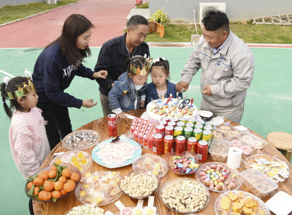 成長陪伴的缺席是無奈,也是更濃的愛。5歲的大女兒和3歲的小女兒出生時,楊興義都沒能第一時間陪在她們身邊,他心中對家人一直心存虧欠感。農歷小年這天是他小女兒的生日,楊興義叫上工友們在項目部和他一家一起吃蛋糕,為孩子慶生。