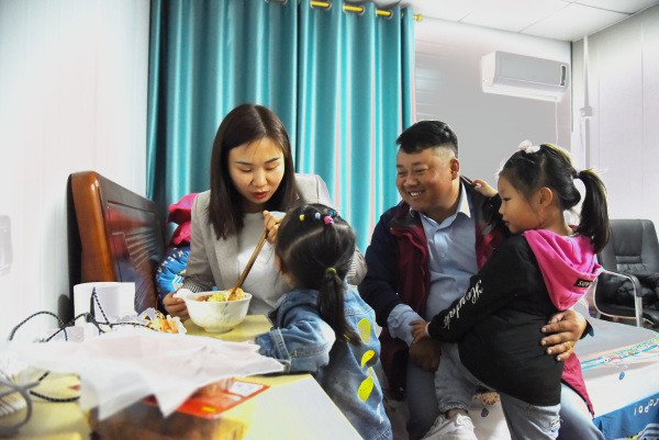 最近,他的妻子和兩個女兒來到項目部所在的廣東省汕尾市海豐縣,一家人在板房宿舍里團聚了。