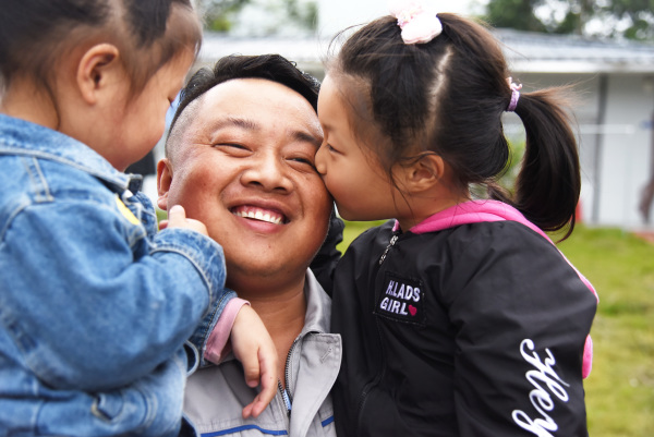 “孩子們突然之間就長大了。”楊興義說,一年到頭和孩子們團聚的時間加起來不到一個月,見面了總覺得親不夠、愛不夠、抱不夠,就想多抱一下女兒。