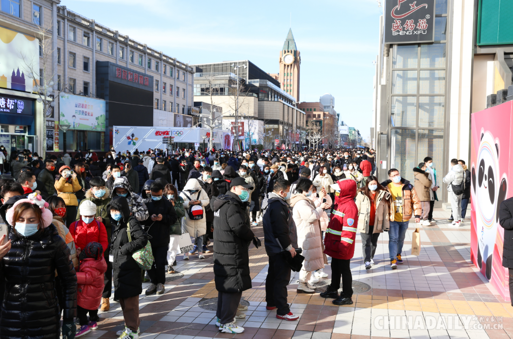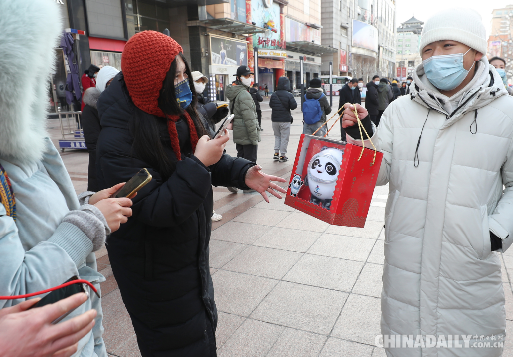 2月6日,北京王府井大街,顧客排隊購買北京2022官方特許商品。中國日報記者 武曉慧 攝